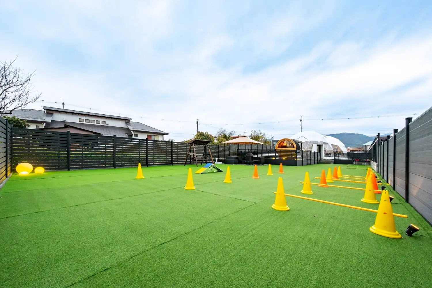 周囲を気にせず遊べる広々空間は、安心・安全に配慮された設計で、リードなしでものびのび過ごせます。