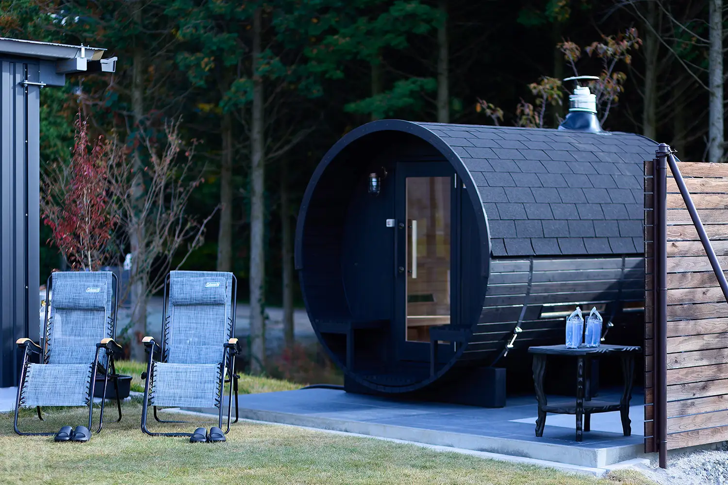 完全プライベートな空間のため、周囲を気にすることなく、セルフロウリュや高原の澄んだ空気に身を委ねる外気浴をお楽しみいただけます。