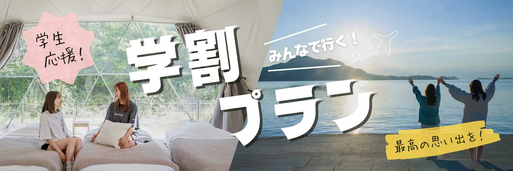 本キャンペーンでは、学生証の提示による割引をはじめ、グループ旅行に嬉しい特典付きプランなど、仲間や友人と過ごす特別な時間を後押しする内容をご用意。