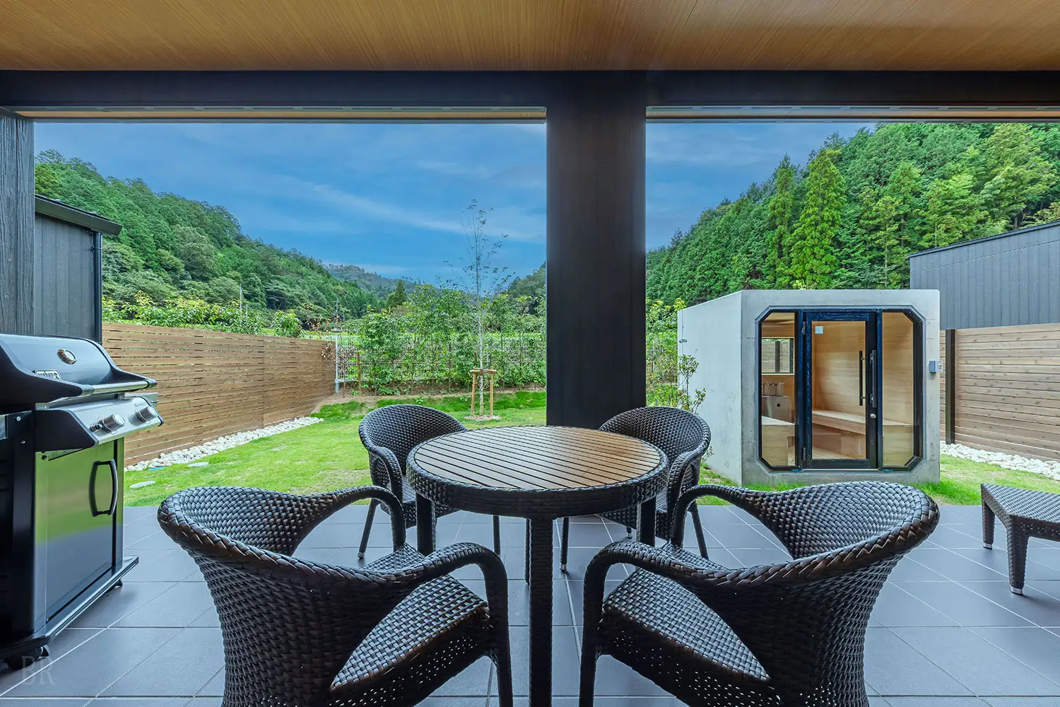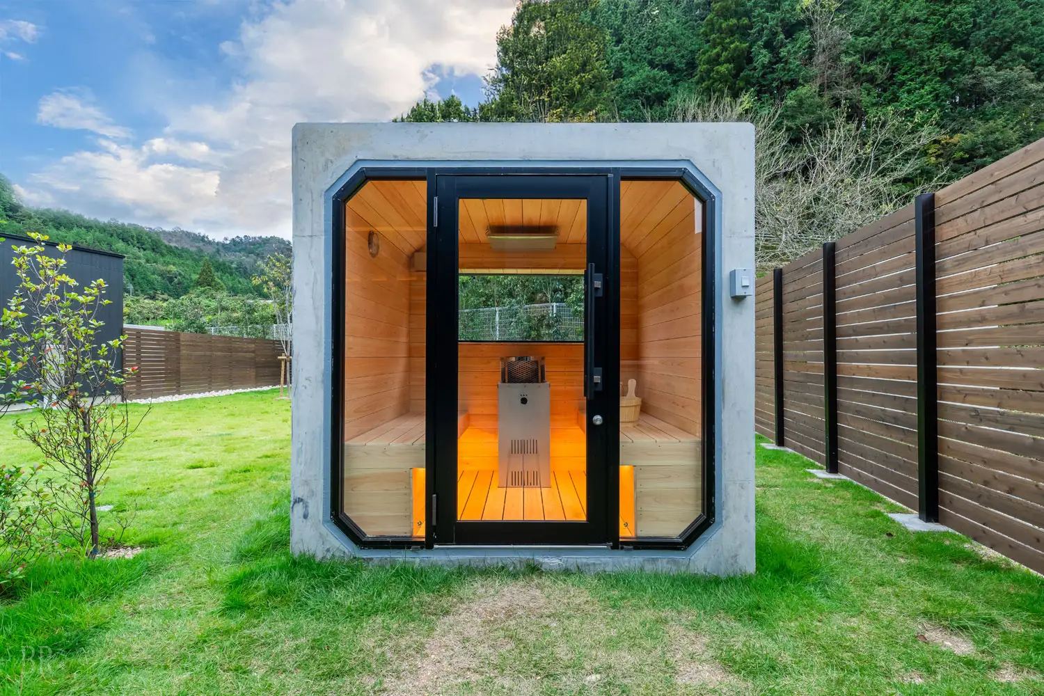 全国でも珍しいコンクリート製のプライベートサウナを全棟に完備。他のお客様を気にすることなく、静かな空間で心と体をととのえるサウナ体験を楽しめます。愛犬がくつろぐ姿を眺めながらととのう時間は、日常を忘れる特別なひとときです。
