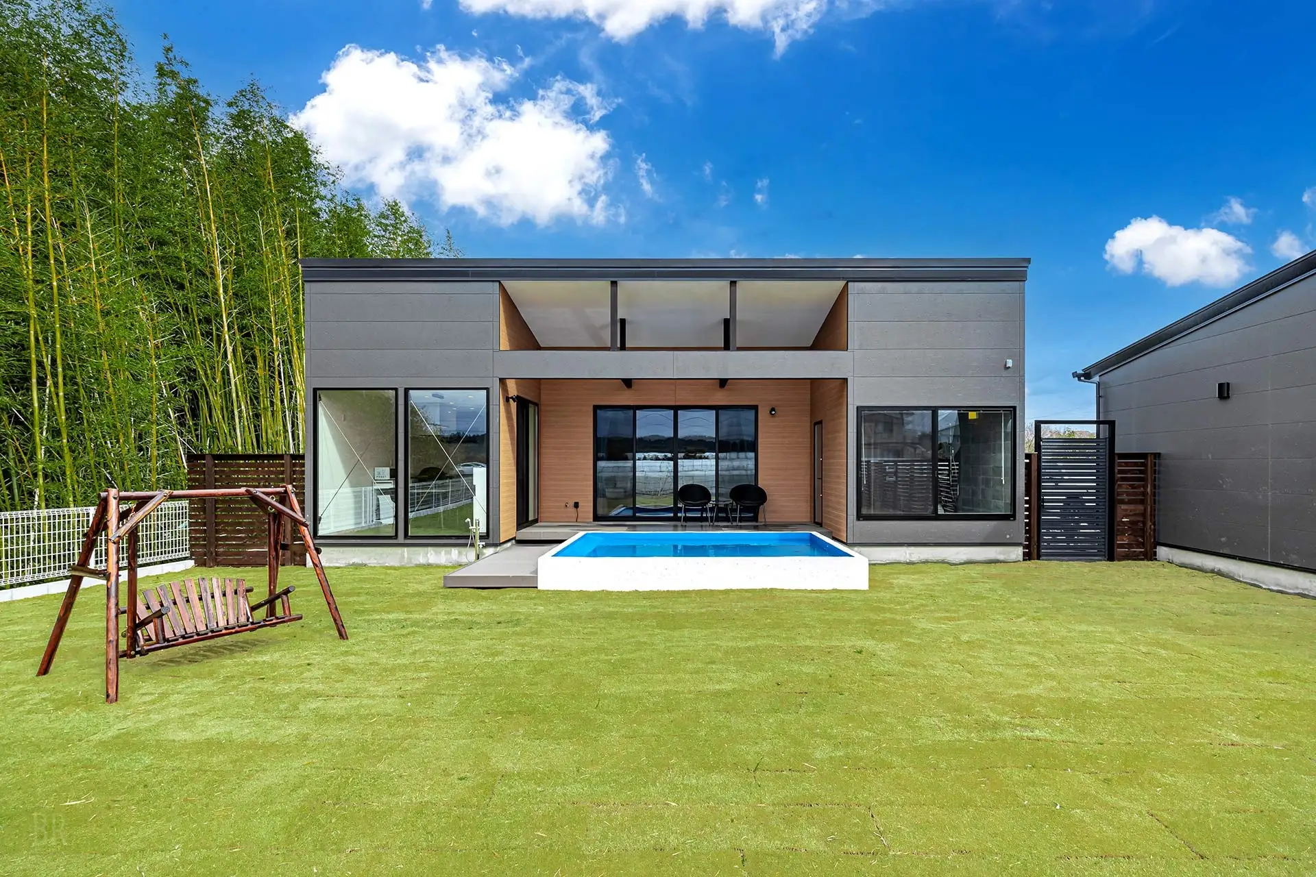 約100㎡以上の広々とした敷地内には、愛犬がノーリードで思い切り走り回れる専用ドッグランを完備。さらに、オーナー様には本格的なバレルサウナとプライベートプールをご用意しました。 サウナで整い、プールでクールダウン。そんな都会の喧騒を忘れる「静寂と解放」が共存する、家族だけの濃密な時間をお約束します。