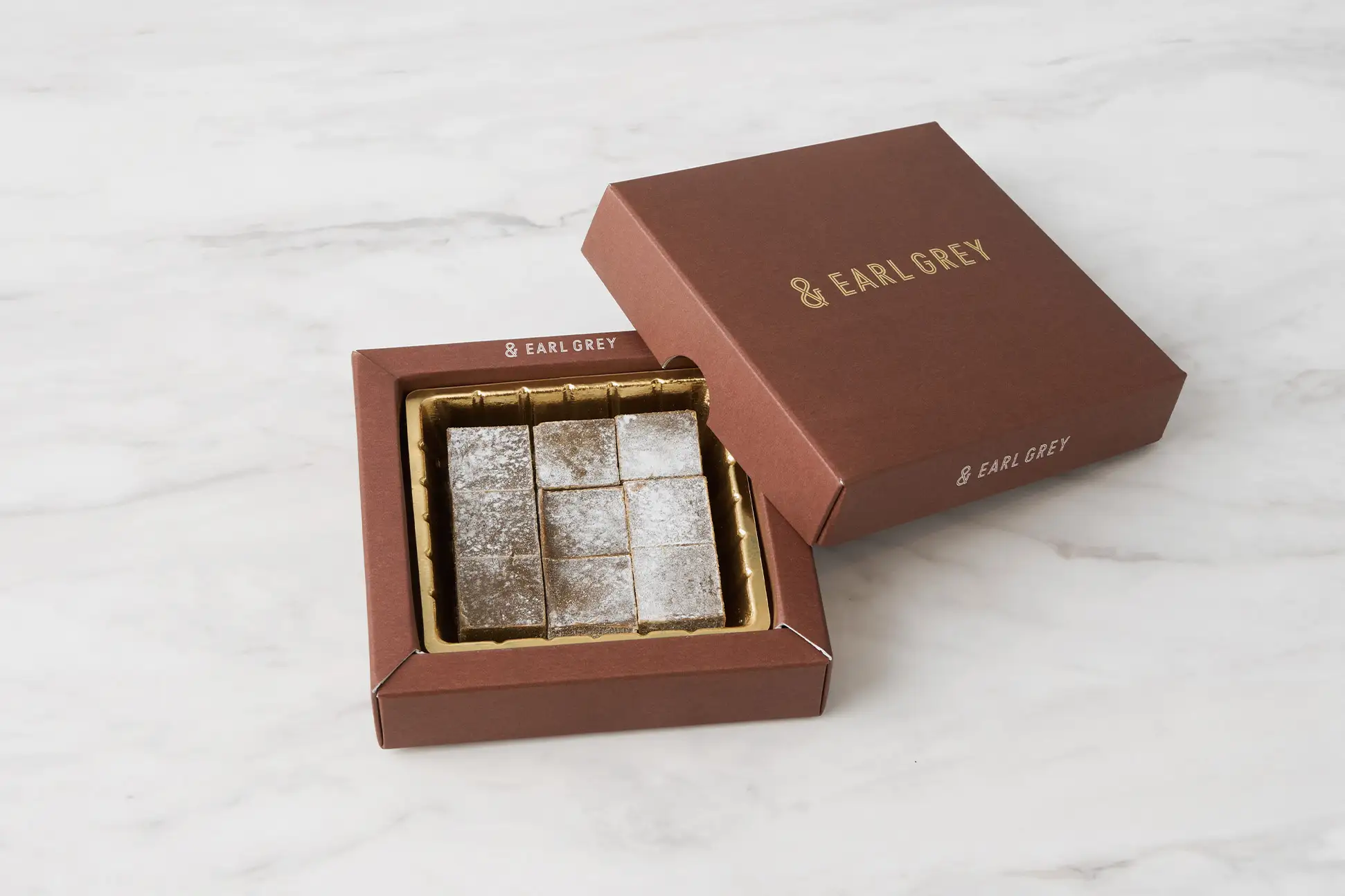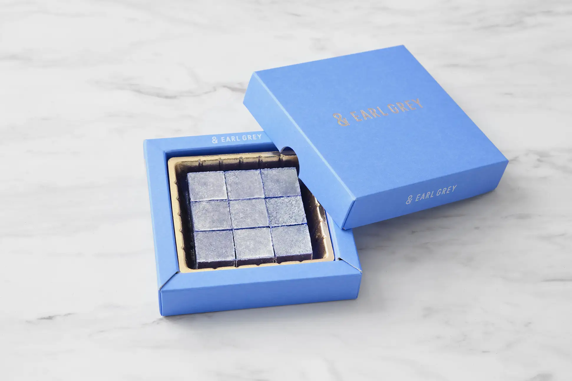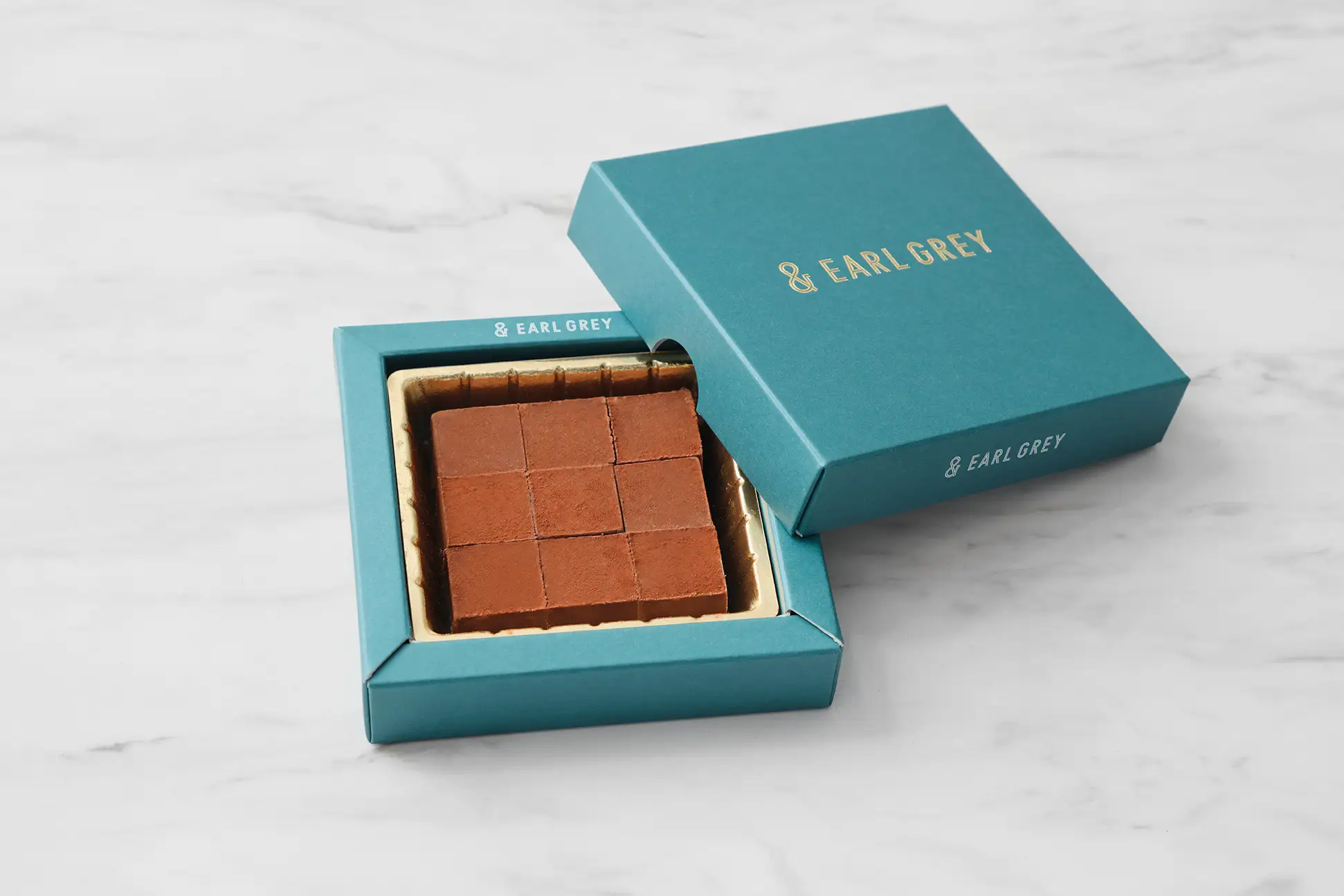 天然ベルガモットとベルギー産チョコレート&北海道産生クリームをたっぷりと使った、お茶とアールグレイの香りを楽しむ生チョコレート。