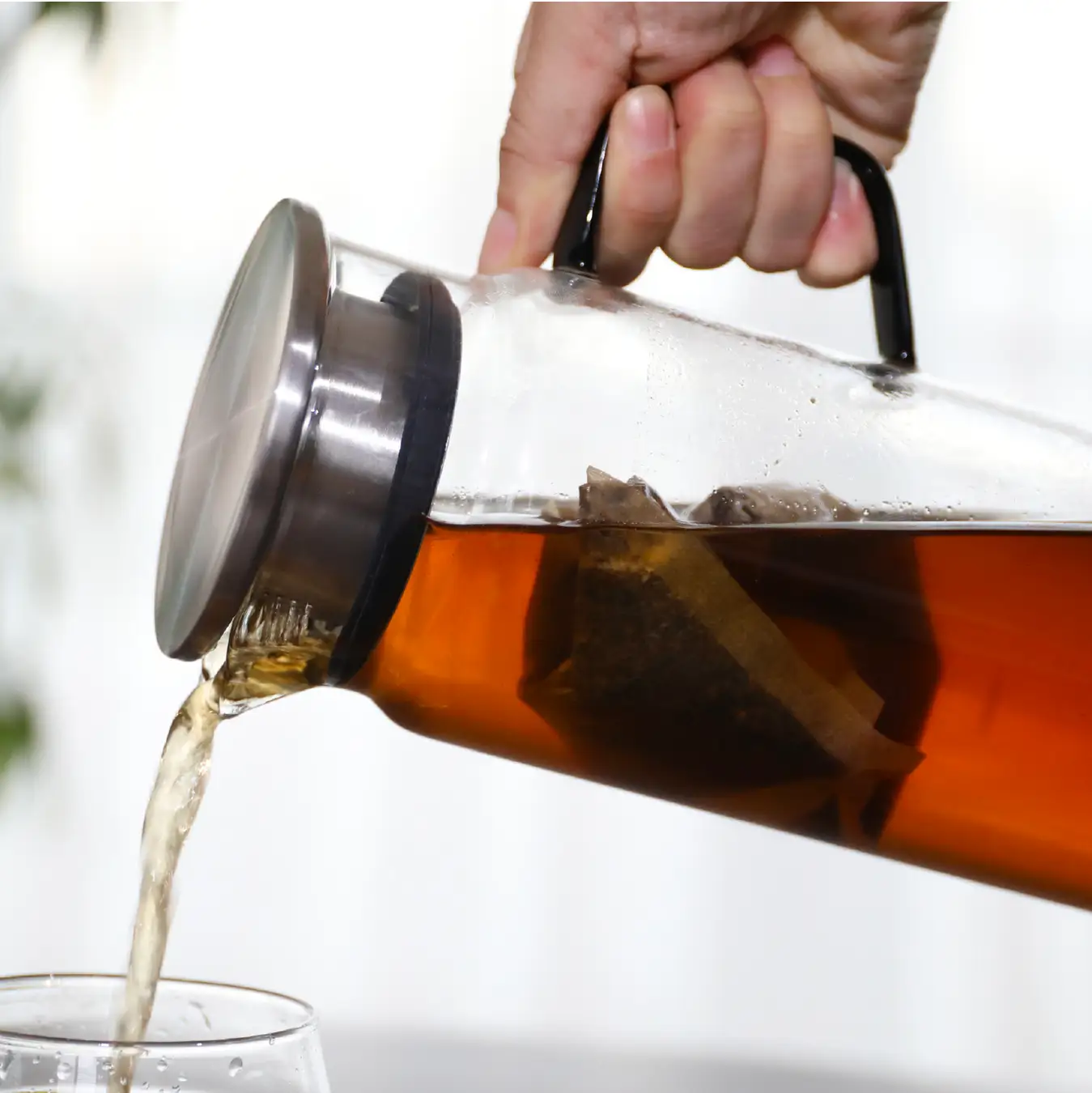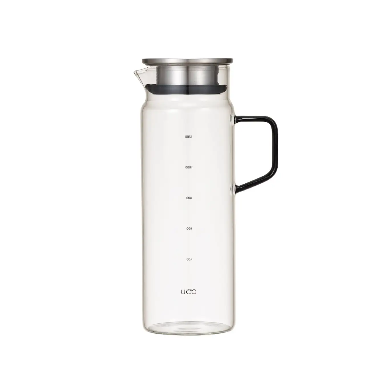 熱湯OKの耐熱ガラスフィルター付き手が入る広口注ぎやすいハンドルを備えたジャグです。