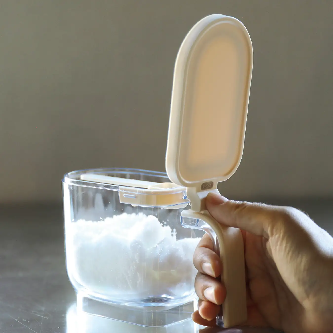 毎日使うからこそより快適なものを選ぶのがおすすめ。スプーンが浮いて、フタが固定される、そんな工夫が嬉しい調味料ポット。