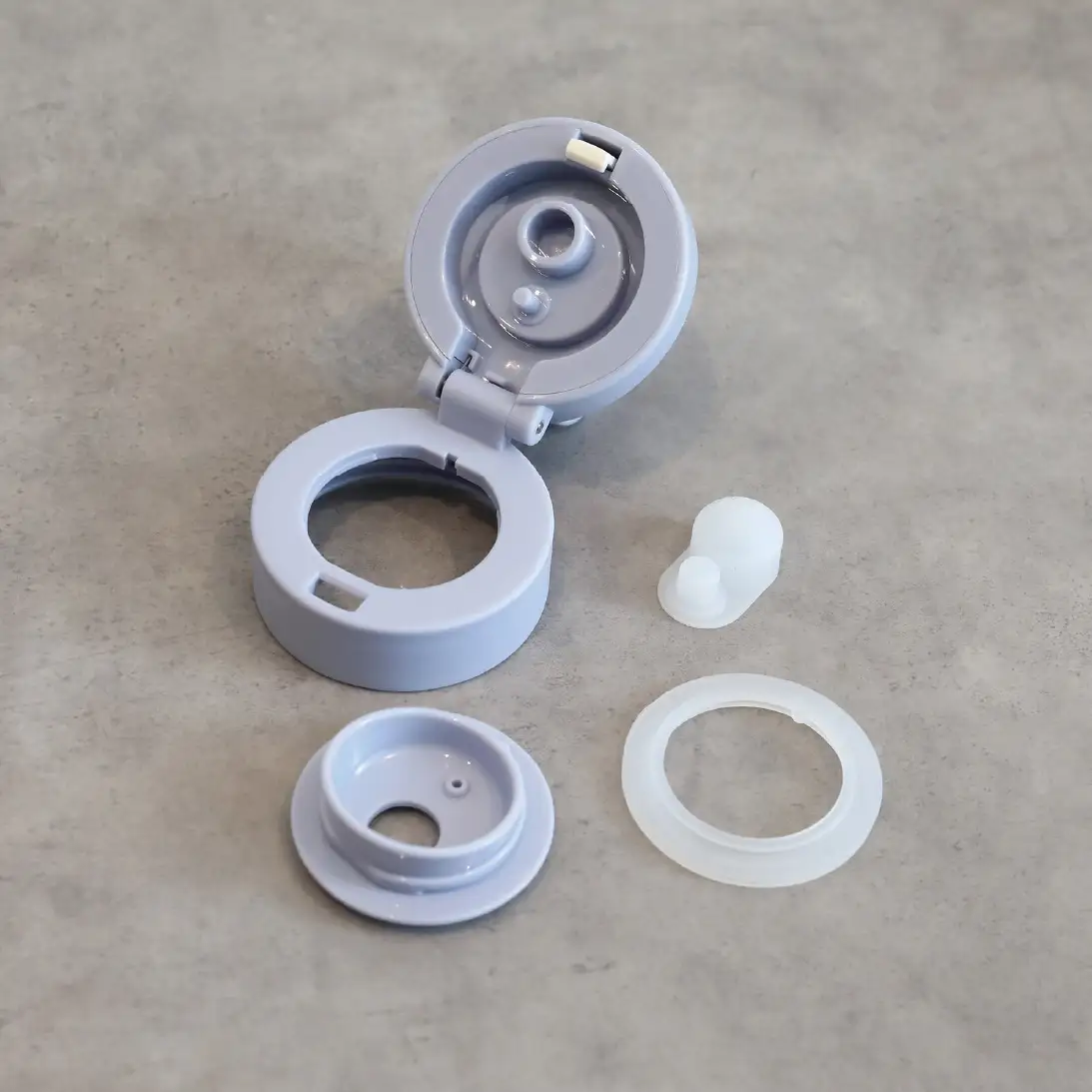 フタは「飲み口」と「パッキン」を分解して洗えます。