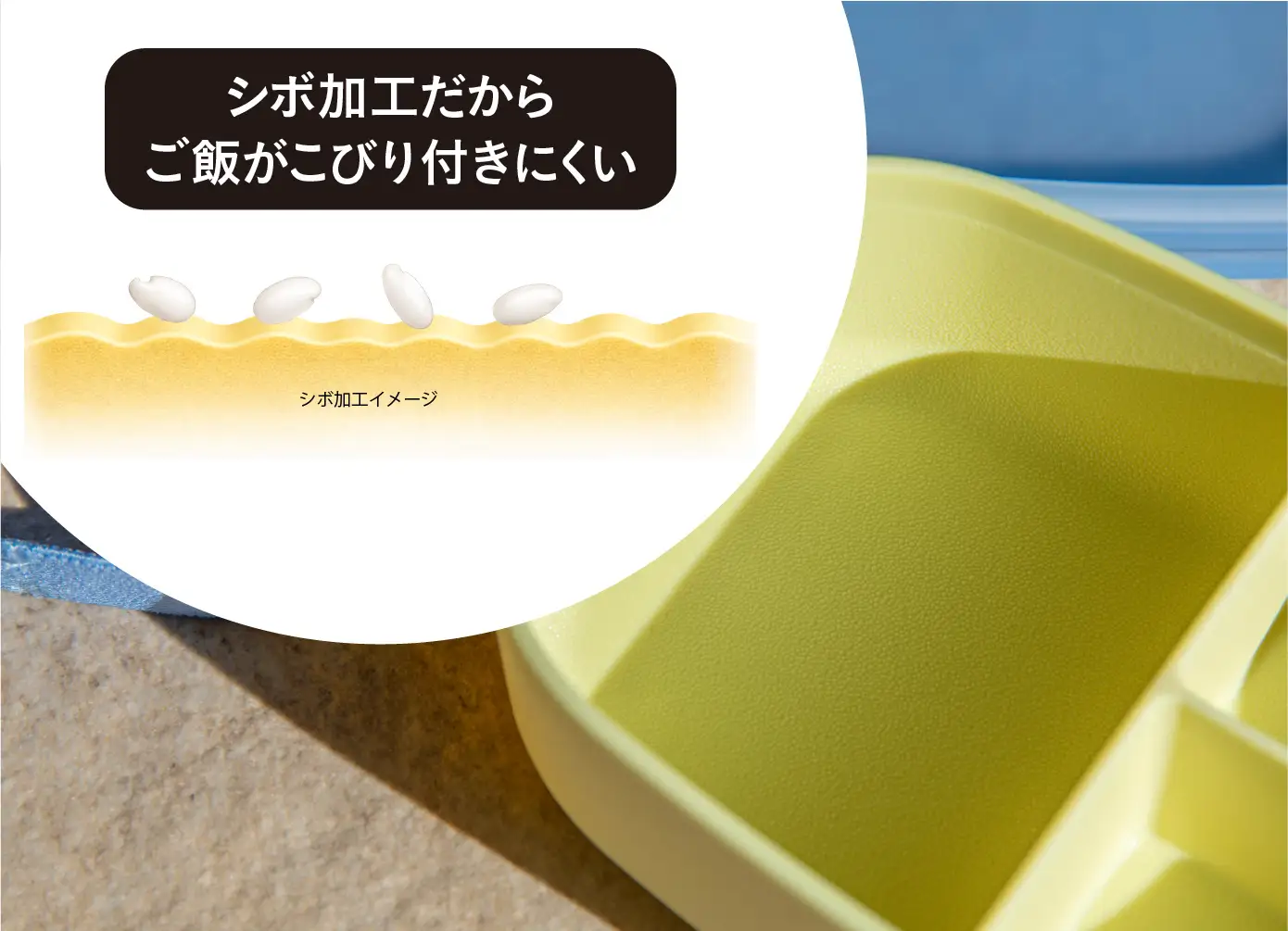 内側にはシボ加工を施し、ご飯粒や汚れが付きにくい仕様に。