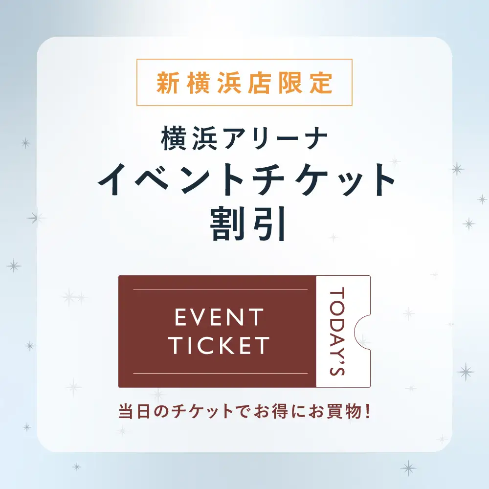 新横浜駅から徒歩5分の「横浜アリーナ」で開催されたイベントの当日チケットをご提示いただいた方限定で、200円引きのサービスを実施中です。対象のお客様は、1会計につき税込1,500円以上ご購入いただくと、200円を割引いたします。