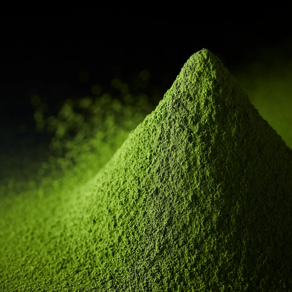 旬の時期に摘み取った上質な茶葉を厳選し、茶葉の深い味わいを生かす伝統的な技法である「石臼」でゆっくり丹念に挽いた抹茶を使用しています。鮮やかな色、まろやかな旨味、程よい渋味が特長です。