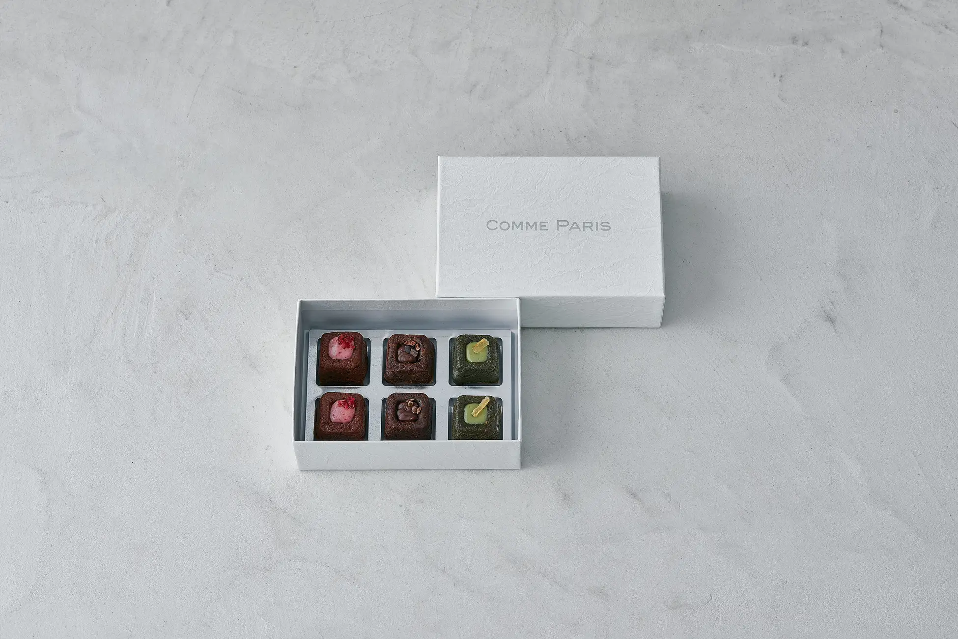 〈COMME PARIS(コムパリ)〉Trois Fondants(トロワ・フォンダン)6個入(フォンダンショコラ、抹茶フォンダンショコラ、ベリーフォンダンショコラ×各2) 2,980円/1階イベント(八重洲側イベント前)