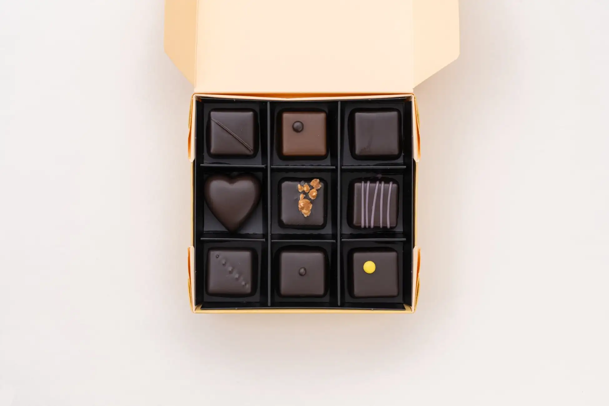 4カ国のカカオ産地の個性と素材のマリアージュを愉しむアソート。ブランドを象徴する希少な一番塩を使ったガナッシュやキャラメル、丁寧にローストした濃厚な香りと風味のナッツプラリネに加え、ドイツ産の薔薇を贅沢に纏ったハート型ローズショコラの華やかなアロマもお楽しみいただけます。