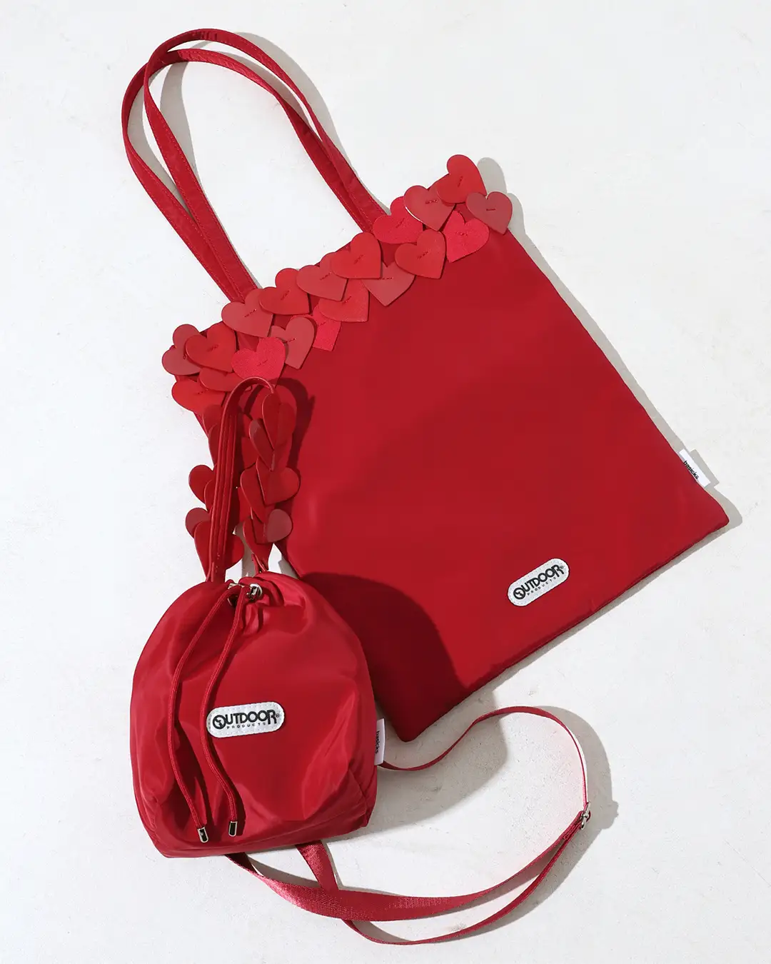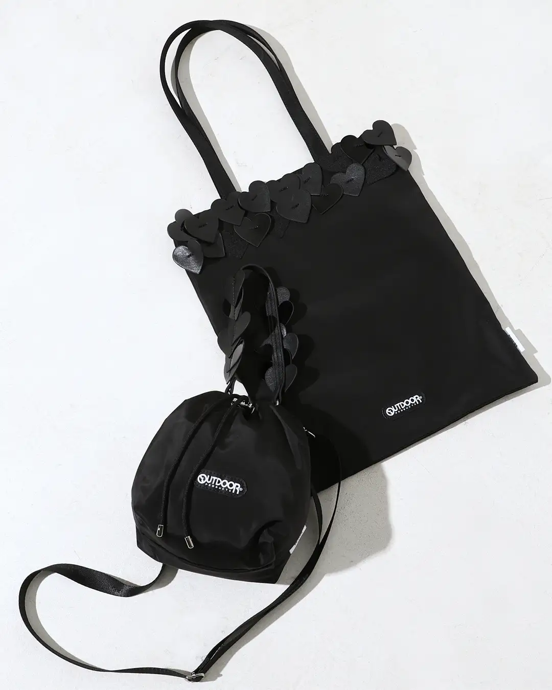新作はBASICKSのアイコンでもあるハートモチーフをランダムに施したトートバッグと巾着バッグの2型をラインアップしました。ハートのパッチが遊び心あるデザインになっています。