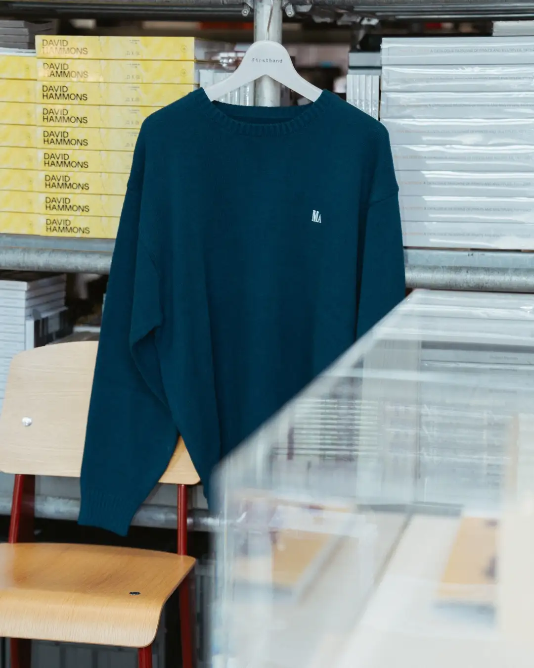 今季から定番化したMAロゴ刺繍を配したクルーネックニット。やわらかな肌触りと軽さを両立するコットン×アクリル素材を採用し、秋から春まで活躍します。適度にリラックスしたシルエットでボトムスを選ばず、古着にありそうなコットンニットのムードに落とし込むことで、ウール調のきれいめに寄りすぎないカジュアルな着こなしが可能。トレンド感をMAの解釈で再編集した、新たな“スウェットの次”としてもおすすめの一枚です。