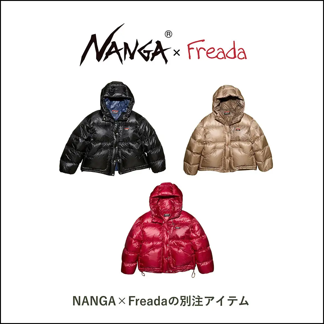 Freadaのインラインでは、日本のアウトドアブランド「NANGA(ナンガ)」との別注ダウンジャケットが注目アイテム。