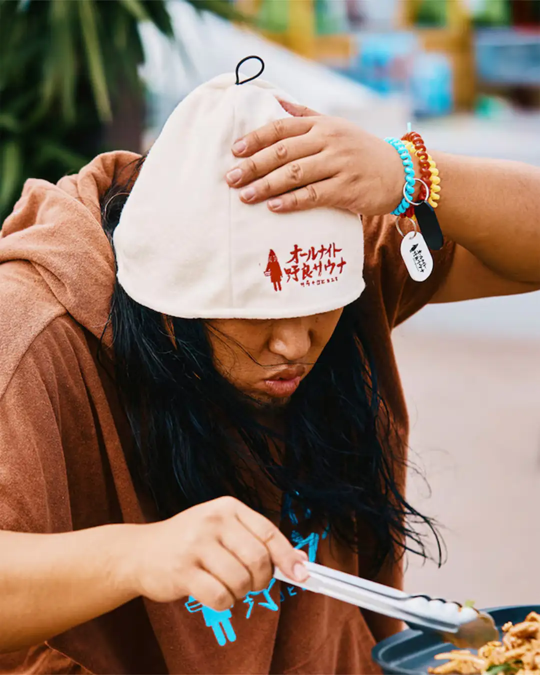 秋山竜次「クリエイターズ・ファイル」とのコラボレーション企画第一弾となった、”サウナ田ヒロユキ”。健康ランドにありそうな柄をイメージして制作した、”健康ランドフラワーブルー”が瞬く間に完売。その他、完売していたサウナハットやサウナセット、Tシャツが追加販売されることが決定!