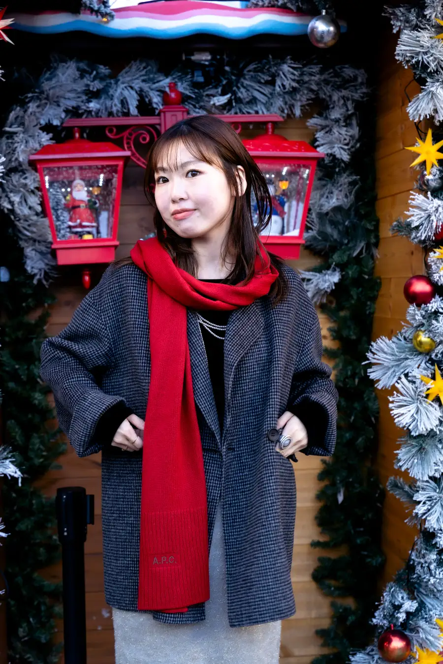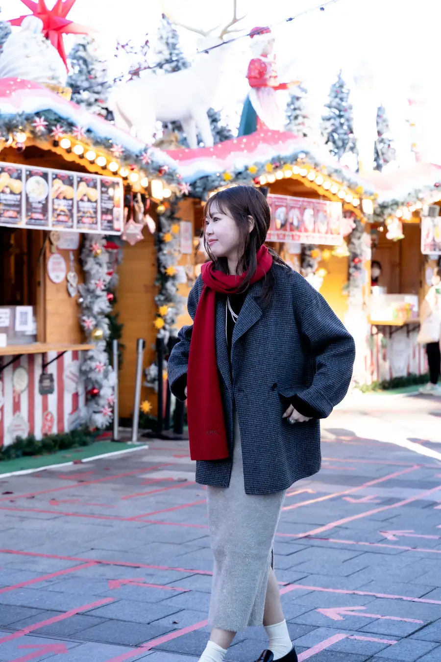 マフラーで首元も暖かいのでクリスマスマーケットでデートしたいですね!温かいホットココア飲みたいです。
