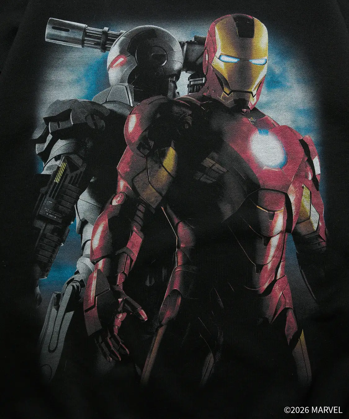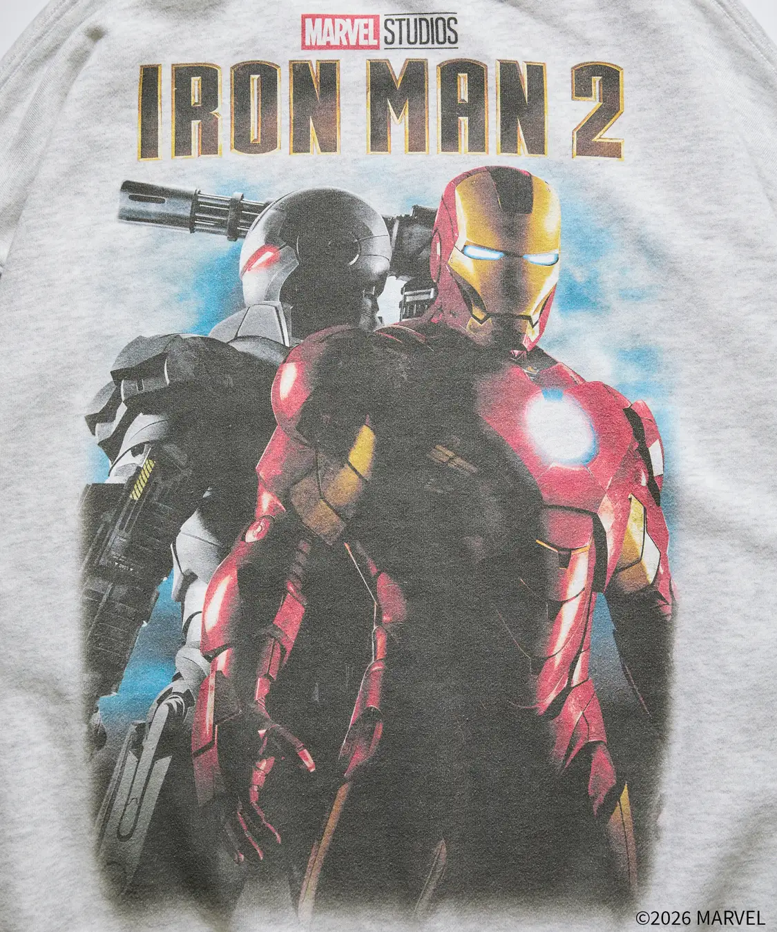 「アイアンマン」とウォーマシンがデザインされた『アイアンマン2』のキービジュアルをプリント。
