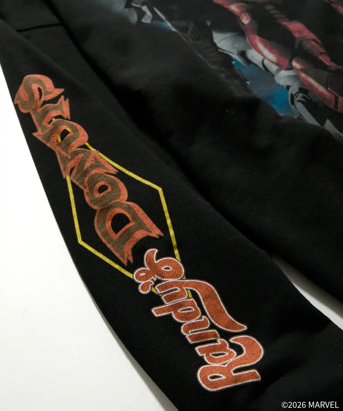 両袖には『アイアンマン2』、「ランディーズドーナツ」の各ロゴを配したデザイン。