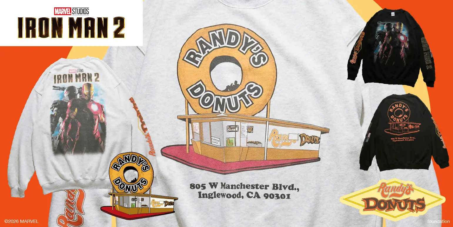 株式会社デイトナ・インターナショナル(本社:東京都渋谷区/代表取締役社長 高橋 正博)が運営するセレクトショップ「FREAK’S STORE(フリークス ストア)」は、当社が運営する映像事業「フリークスムービー」企画による、2010年公開の『アイアンマン2』とLA名物のドーナッツショップ「ランディーズドーナツ」とのTシャツ3型・スウェット2型のスペシャルアイテムを、1月23日(金) より公式オンラインストア「Daytona Park(デイトナパーク)」及びFREAK’S STORE一部店舗にて販売開始。