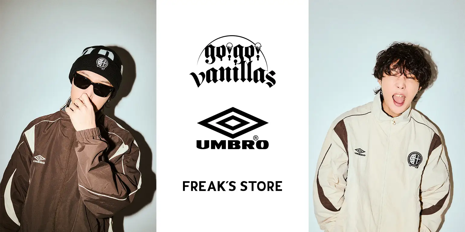 1924年イギリス発祥のフットボールブランド「UMBRO」と、牧 達弥(vo/g)、柳沢 進太郎(g)、長谷川プリティ敬祐(ba)、ジェットセイヤ(dr)からなる4ピース・バンド「go!go!vanillas」とのコラボレーションアイテムが、FREAK’S STORE店舗、及び公式オンラインストア「Daytona Park」に登場!