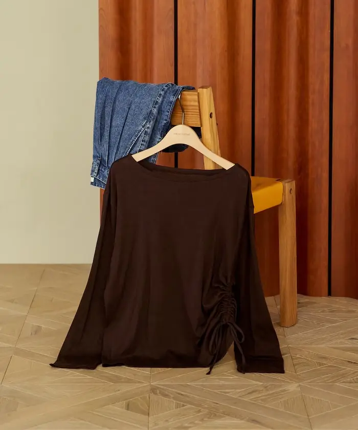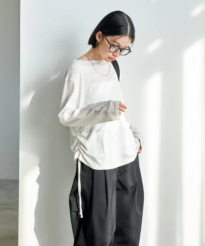 サイドにはシャーリングデザインを施し、シンプルな中に一癖をプラス