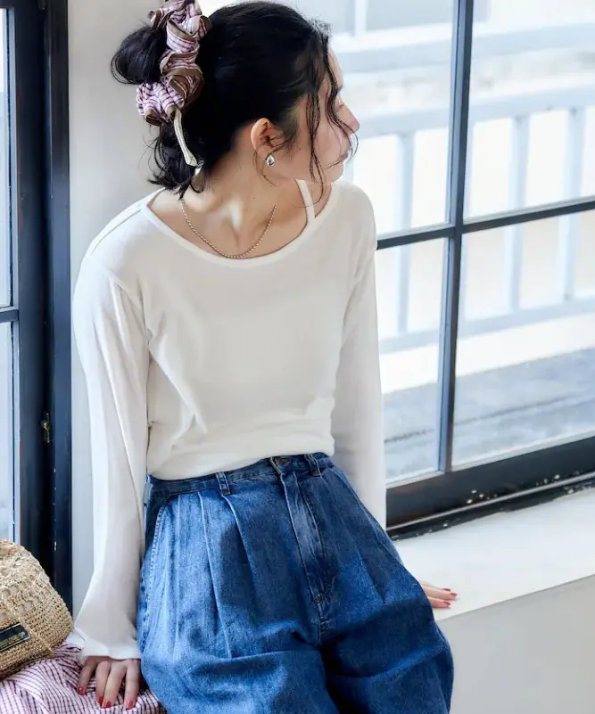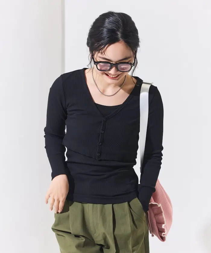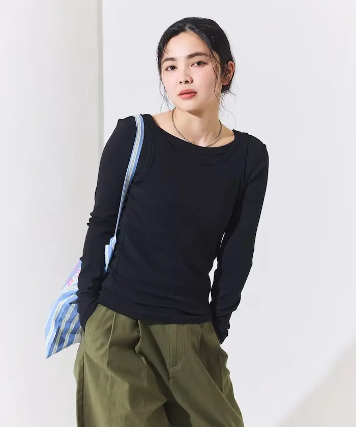 タンクトップはロンTの上にも下にも気分やスタイルに合わせてレイヤード可能。