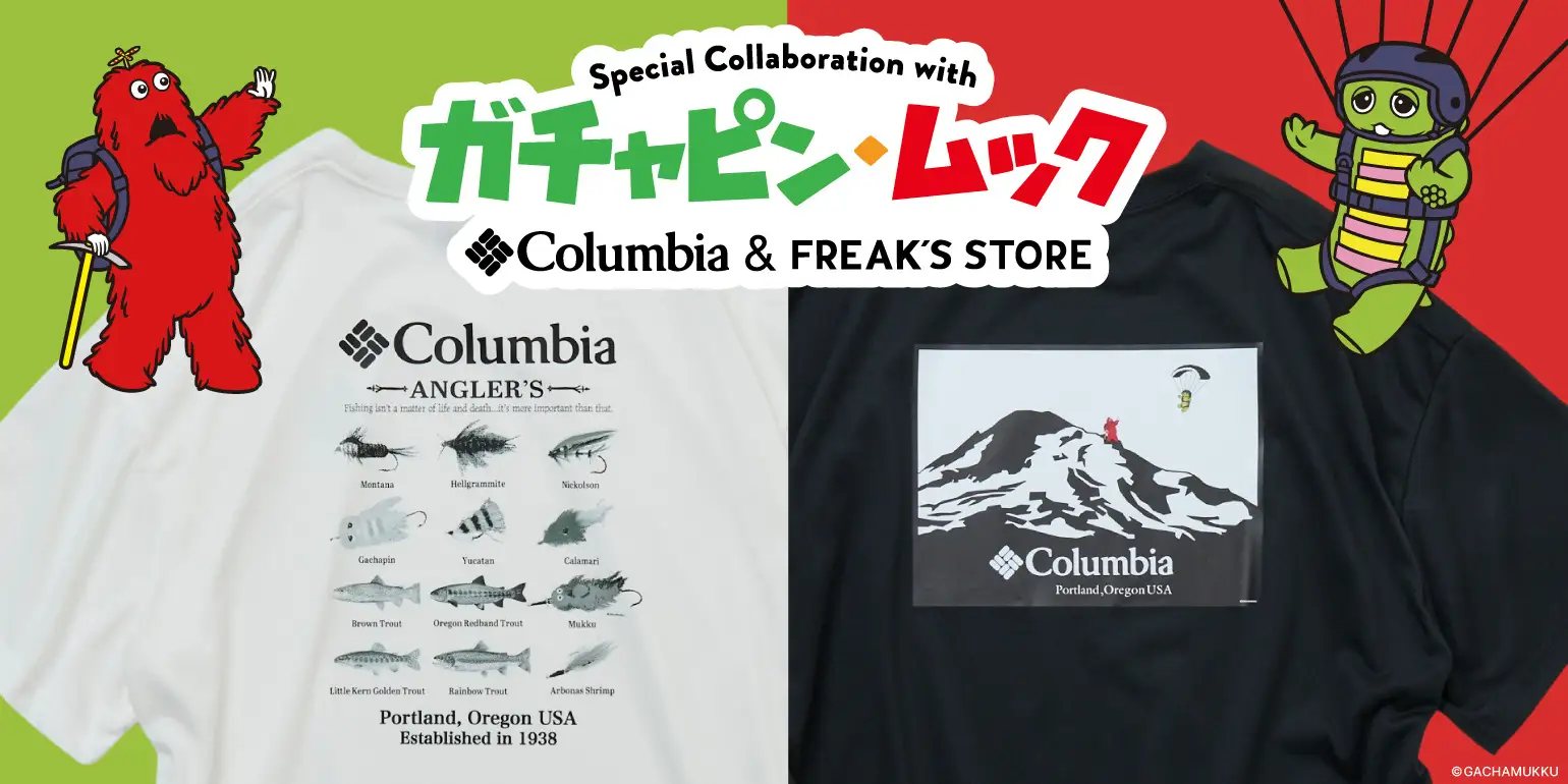 1973年の放送開始以来、シリーズを超えて多くの世代に親しまれてきた幼児教育番組『ポンキッキシリーズ』。その始まりとなる『ひらけ!ポンキッキ』から誕生し、今なお活躍の場を広げている人気キャラクター『ガチャピン・ムック』がアウトドアブランド「Columbia」と「FREAK’S STORE」とのトリプルコラボレーションアイテムとして登場!