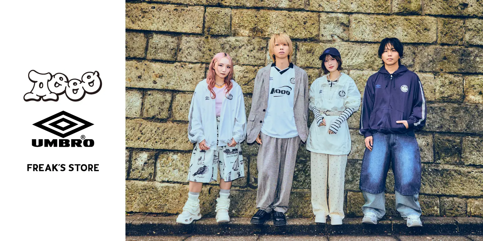 そんな「UMBRO」と、2023年に結成された4人組ロックバンド<Aooo>によるコラボレーションアイテムが、FREAK’S STOREおよび、公式オンラインストア「Daytona Park」にて販売開始!
