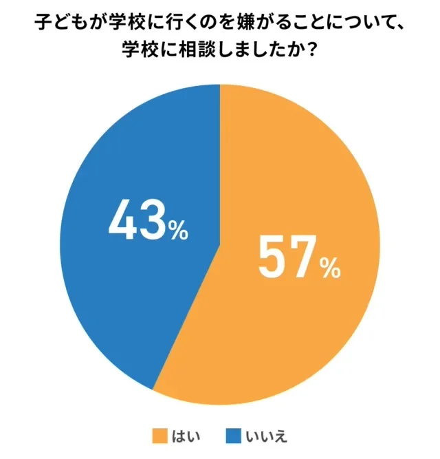 子どもが「学校に行きたくない」と訴える問題に対し、保護者の57.0%が「学校に相談した経験がある」と回答しました。半数以上の保護者が、学校を問題解決のための重要な窓口と考えていることがうかがえます。