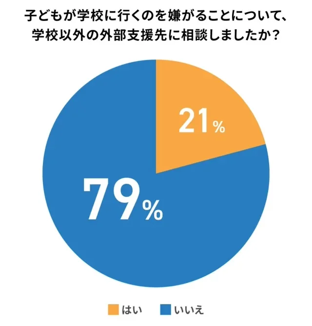 学校以外にも、子どもが学校に行きたがらない問題について外部支援先に相談した保護者は21.0%にとどまりました。多くの保護者が、学校を主要な相談先と考えている一方で、外部機関の利用はまだ少数派であることが分かります。