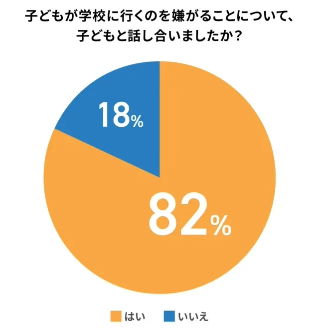子どもが学校に行きたがらない状況に直面した際、82%の保護者が子どもと直接話し合いをしていることが分かりました。これは、多くの保護者が、子どもの気持ちに寄り添い、コミュニケーションを通じて問題の解決を図ろうとしている姿勢が見て取れます。