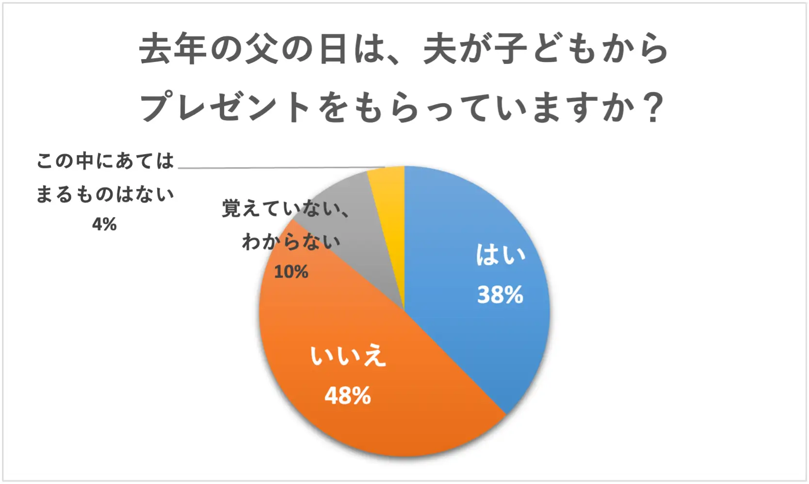 約4割の家庭で、父の日に夫が子どもからプレゼントを受け取ったという事実が確認できます。