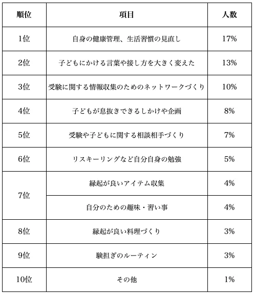 【子どもが受験生になり、受験のために保護者が始めたことランキング】