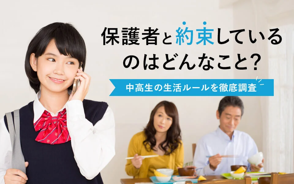 門限やスマホの使い方など、生活のルールは各家庭によって違うもの。親子間で相談することはあっても、保護者同士で話し合うことはなかなかないのではないでしょうか。今回は中高生の子どもを持つ保護者100名を対象に、家庭内の生活ルールについて聞きました。交友関係のルールやスマホの利用時間が中学生と高校生でどう変わるかなど、気になる情報ばかり。生活ルールの見直しに、ぜひ役立ててください。