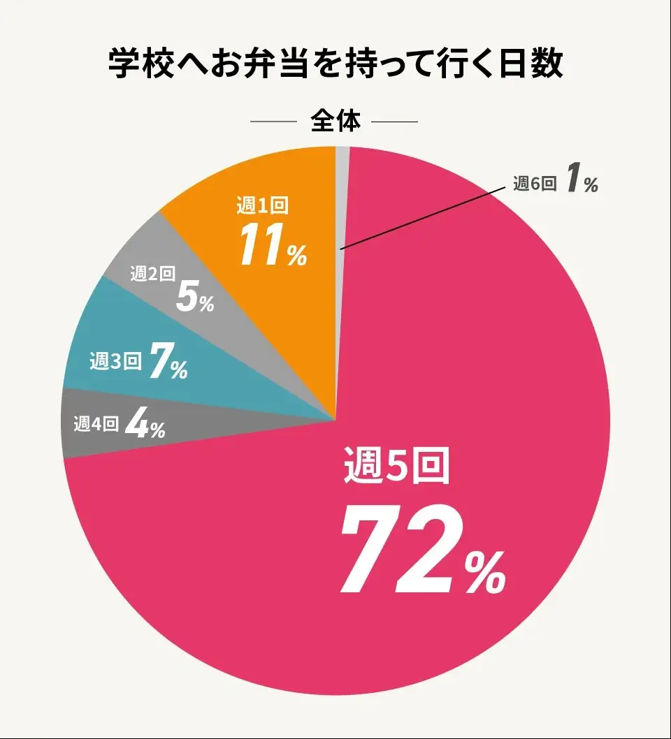 中高生の70%以上が週5日お弁当を持参