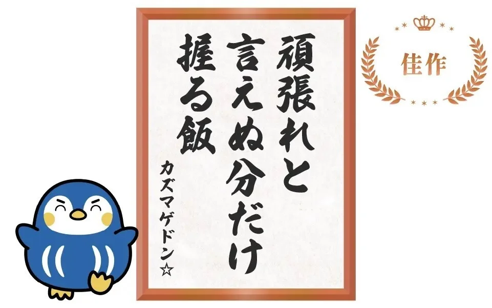 「頑張れ」と直接伝える代わりに心を込めて握られたおにぎりに、送り出す人の不器用ながらも温かい思いを感じました。特に「言えぬ分だけ」という表現に伝えたい気持ちの大きさや切なさが表現されており、多くの人が共感できる川柳なのではないでしょうか。受験や挑戦に送り出す保護者の姿を想像させる、心温まる作品です。