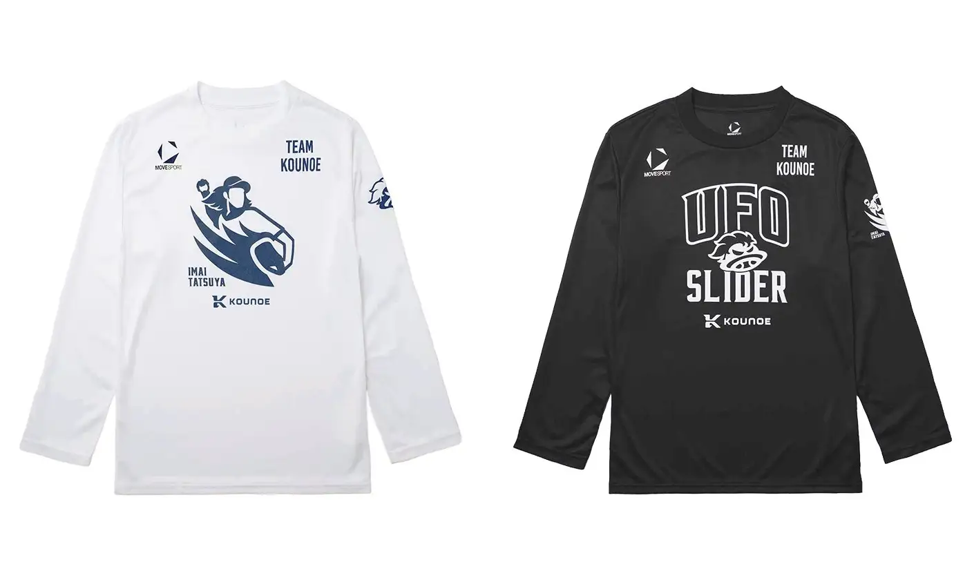 「この度、『コウノエ』『ムーブスポーツ』の両ブランドと共に、色々考えて商品化をできる機会をいただき、大変嬉しく思います。ロゴのモチーフにもなった「UFOスライダー」は、自分の一番の得意なボールですし、多くの方に覚えていただけたら嬉しいです。たくさんの方々に限定アイテムを着用して応援していただけるように今後も頑張りたいと思います。」
