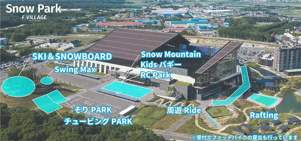 本格的なスキー・スノーボード体験から、小さいお子さまでも安心の雪遊びゾーン、スリル満点の乗車型アクティビティまで、さまざまな楽しみ方ができる雪の総合テーマパークへと進化したF VILLAGE Snow Parkに、ぜひお越しください!
