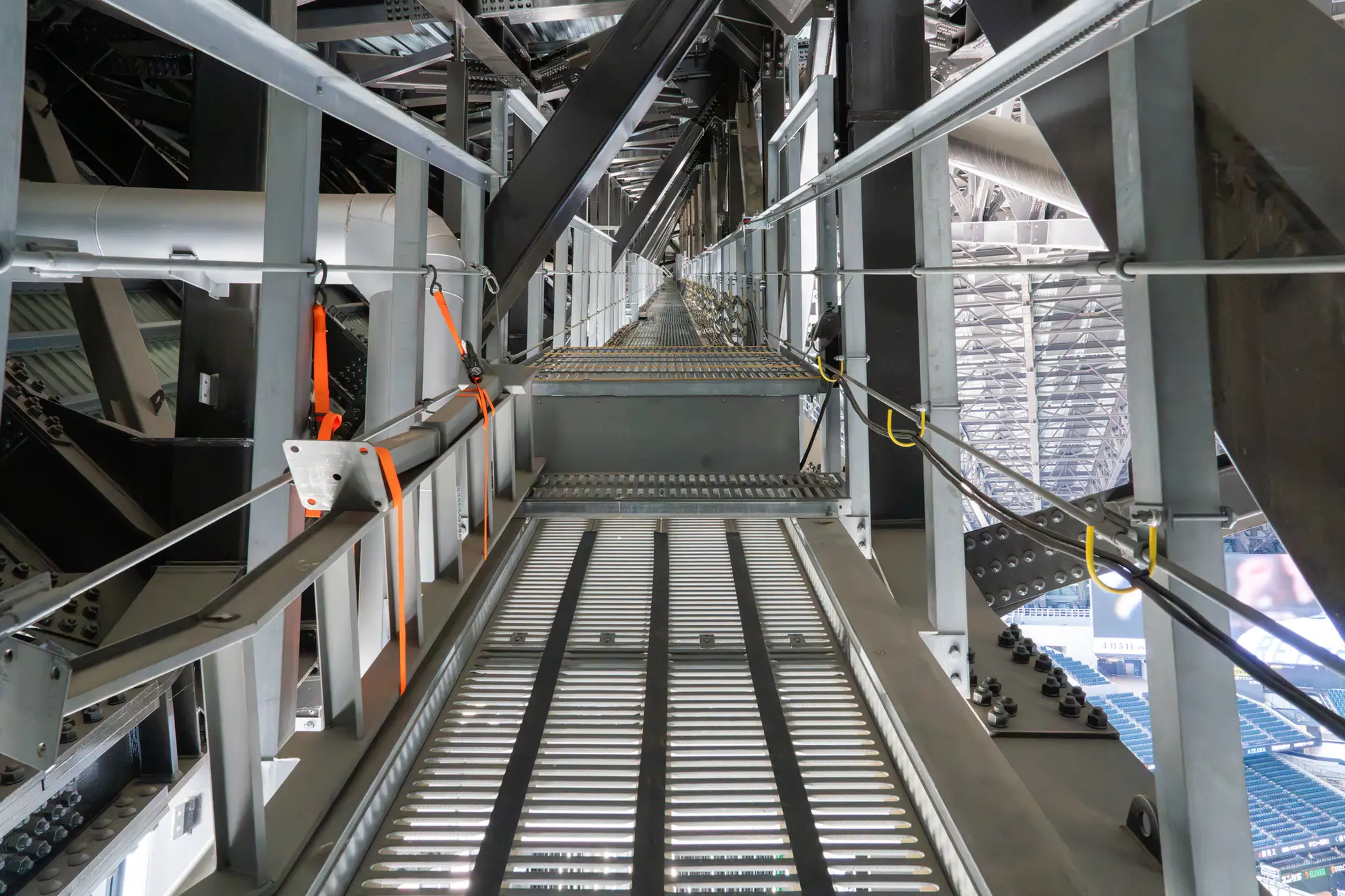 エスコンフィールドHOKKAIDO内ガラスウォール上キャットウォーク |