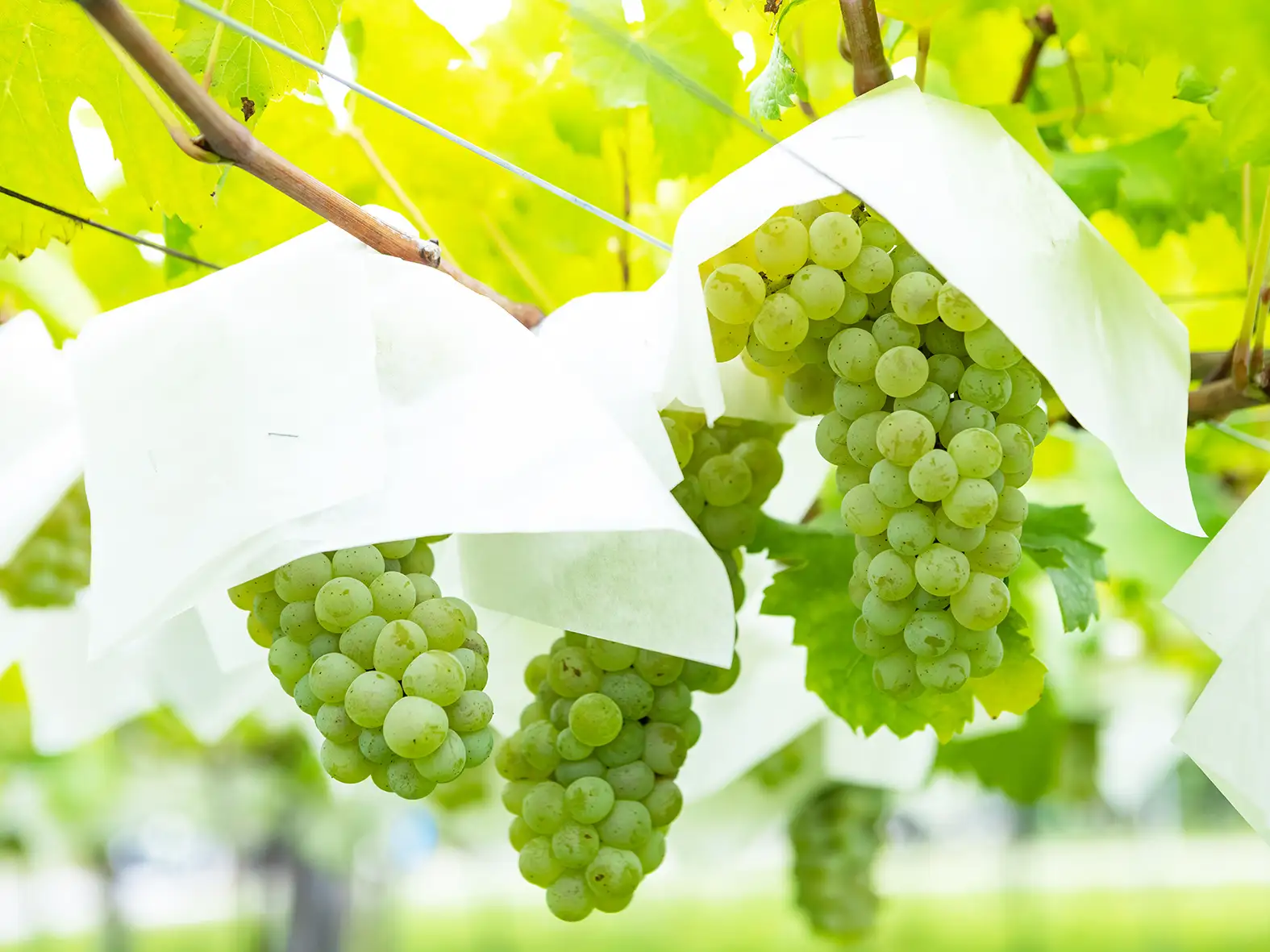 ひと房ずつ丁寧に育てられたぶどう達。ひとりひとりの想いが詰まったぶどうは、静かに完成の時を待っています。