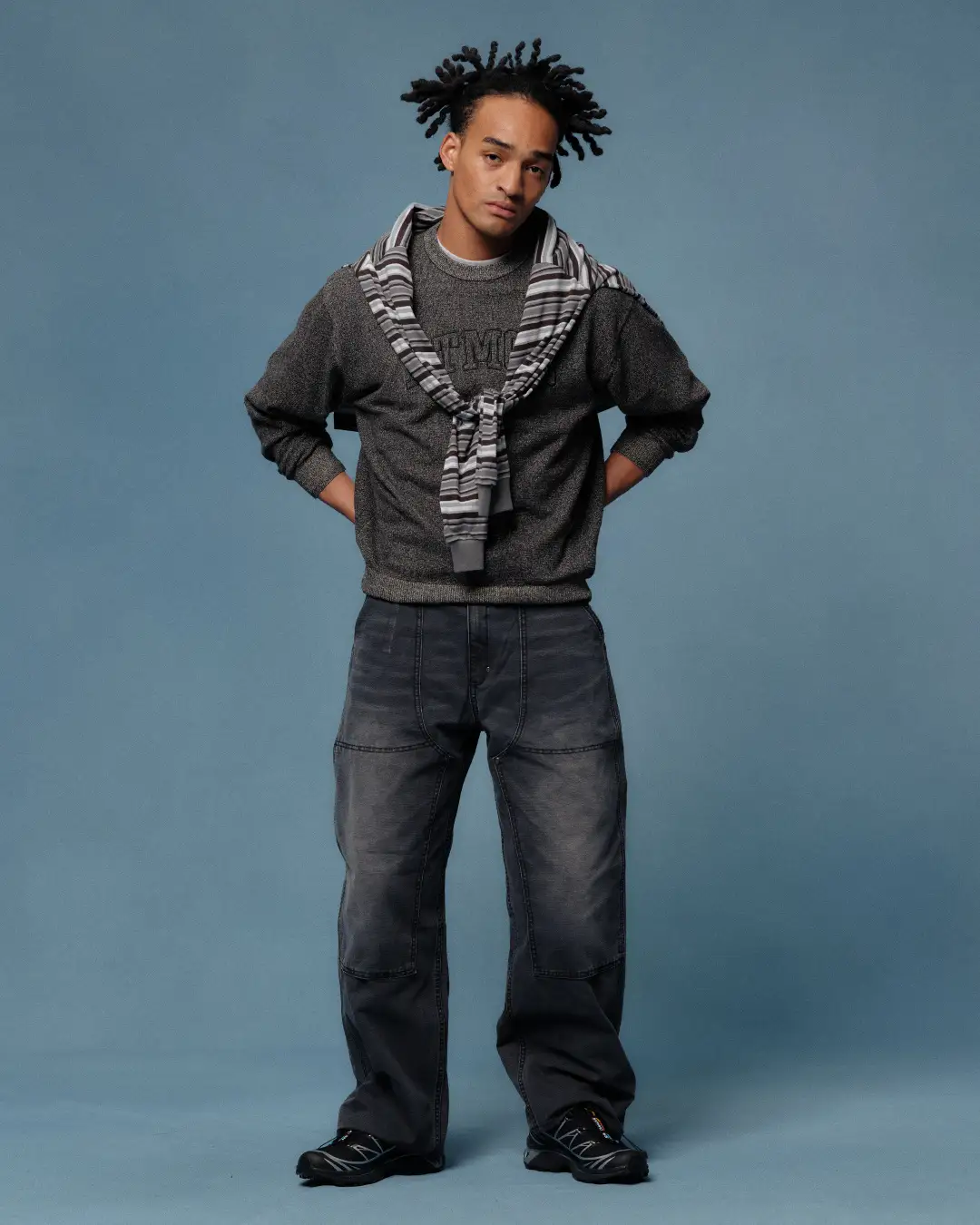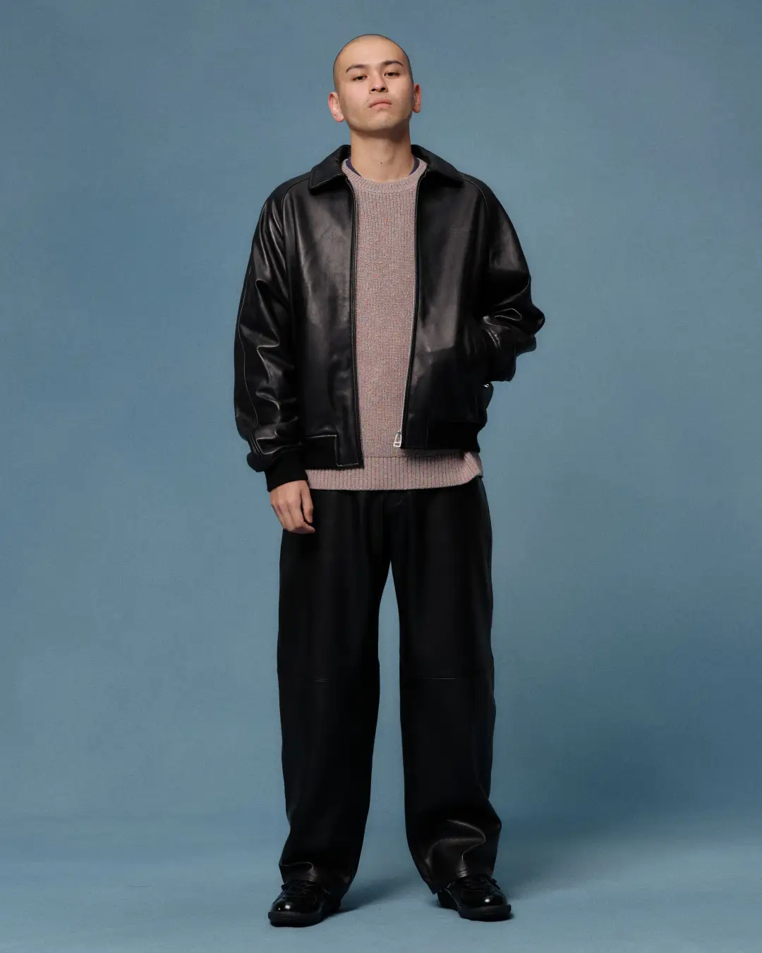 シーズンの立ち上がりでは、オリジナルのカモフラージュ柄を使用したアイテムをはじめ、 構築的なリアルレザーブルゾン、セットアップで着用可能なリアルレザーバギーパンツなどが登場。 レトロな感性と現代的なデザインが交差し、無骨さとストリートが共存するatmosならではの世界観を体現しています。