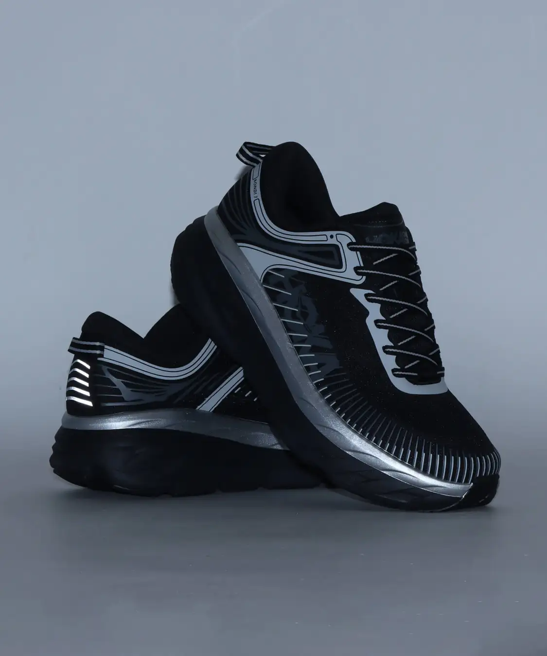 BONDI 7”は、「HOKA」随一のクッション性を誇るモデル。ボリューム感のあるブラック×シルバーのカラーリングが足元に安定感とモダンな印象を与え、長時間の歩行やデイリーユースでも快適さをキープ。​