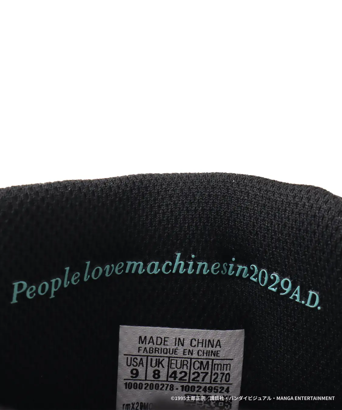 インナーソールに『草薙素子』のビジュアルを配し、彼女の背中に接続されたケーブルがアッパー全体へと伸びていくようなデザインを表現。 ​