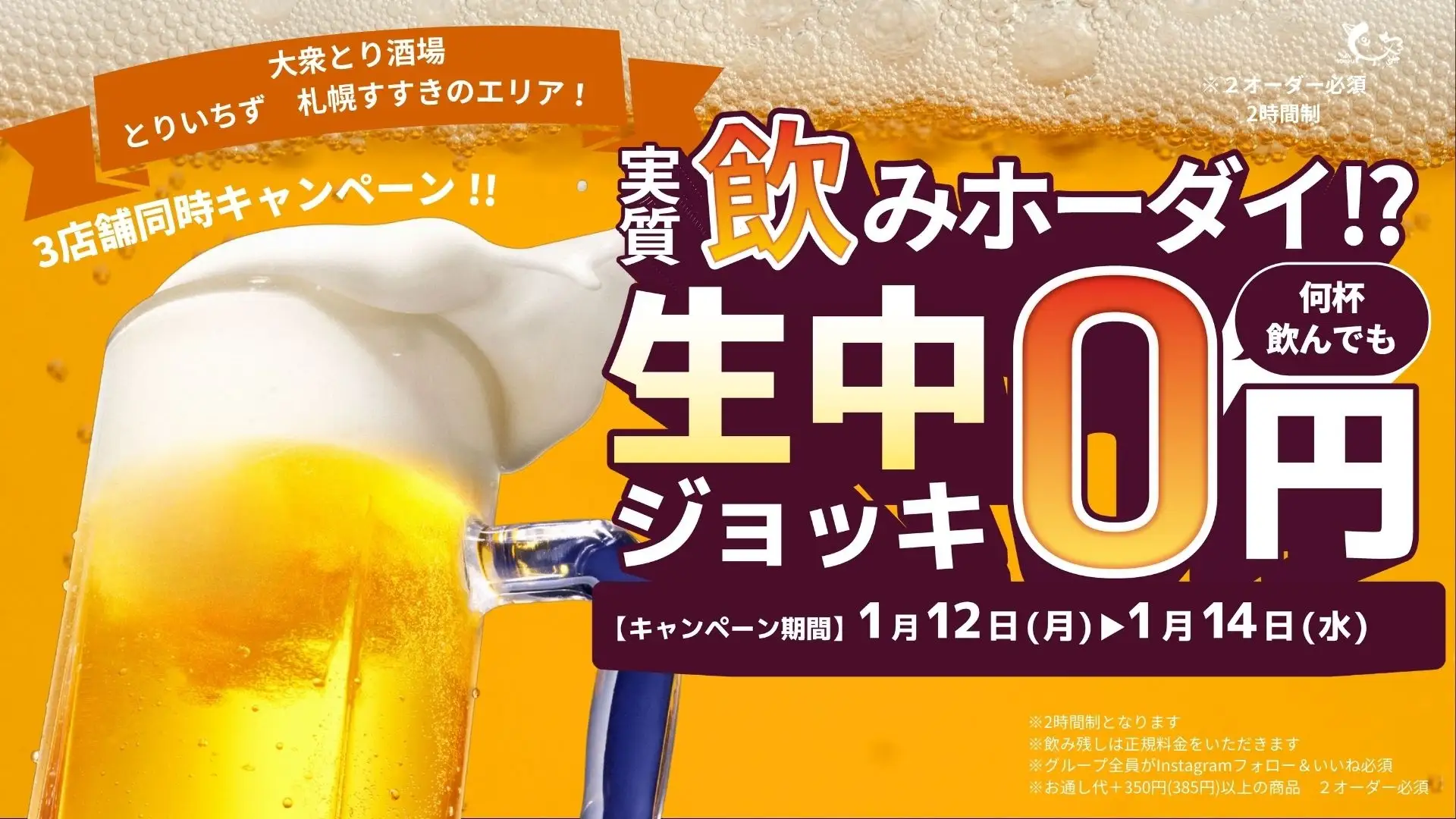 ■ 生ビール0円キャンペーン(3店舗共通)