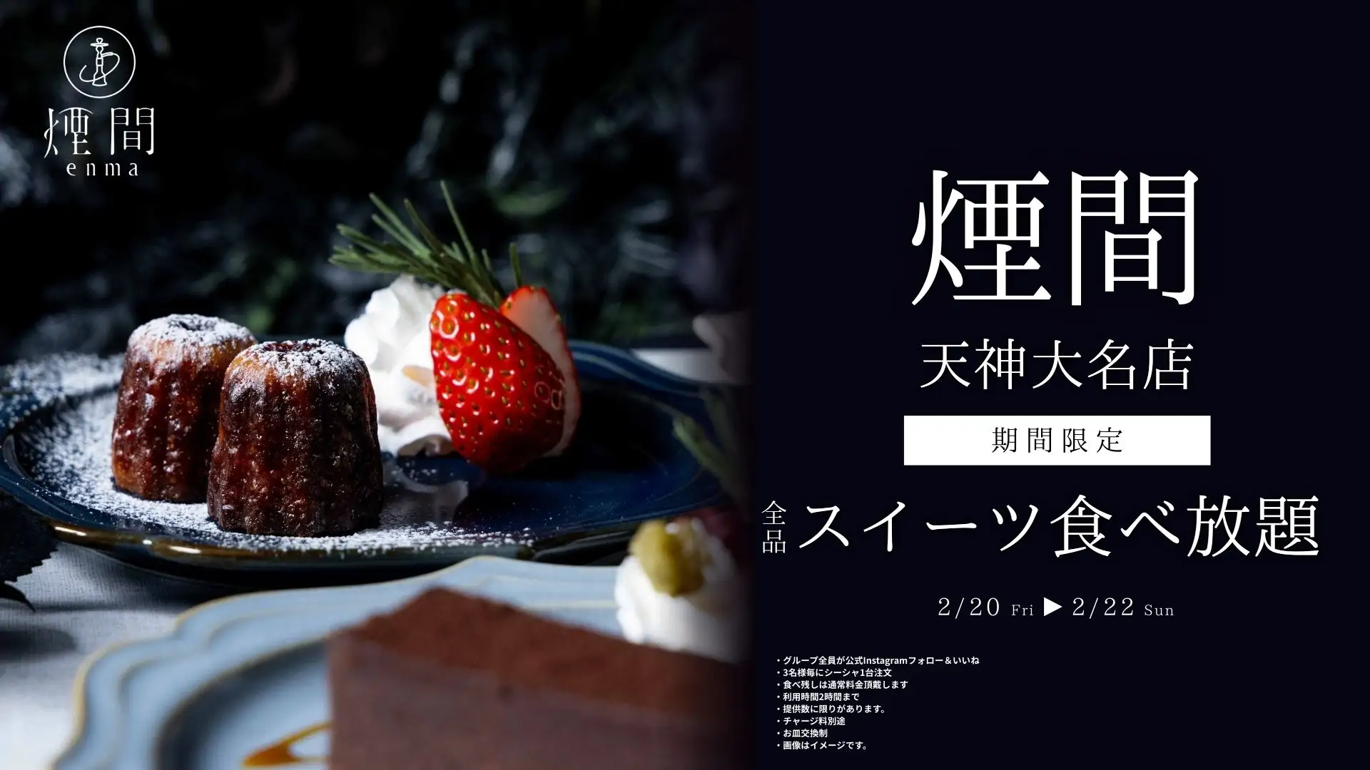レギュラーシーシャ1台ご注文につき、デザート食べ放題