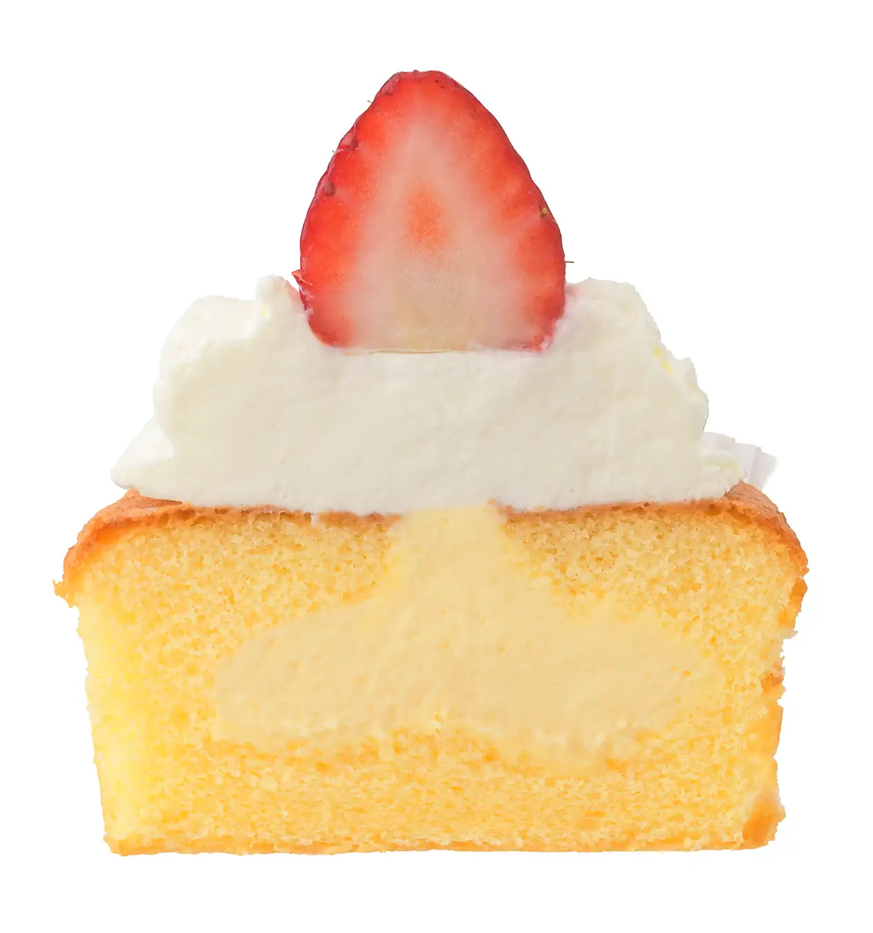 特長:ふわふわのスポンジ生地の中にカスタードを詰め込み、生クリーム入りホイップクリームと粒よりの苺を飾りました。カスタードのまろやかな味わいにスポンジのふわふわ食感、生クリーム入りホイップクリームのすっきりとした甘さと苺の酸味が絶妙にマッチした、どこかホッとできる味わいのカップショートケーキです。