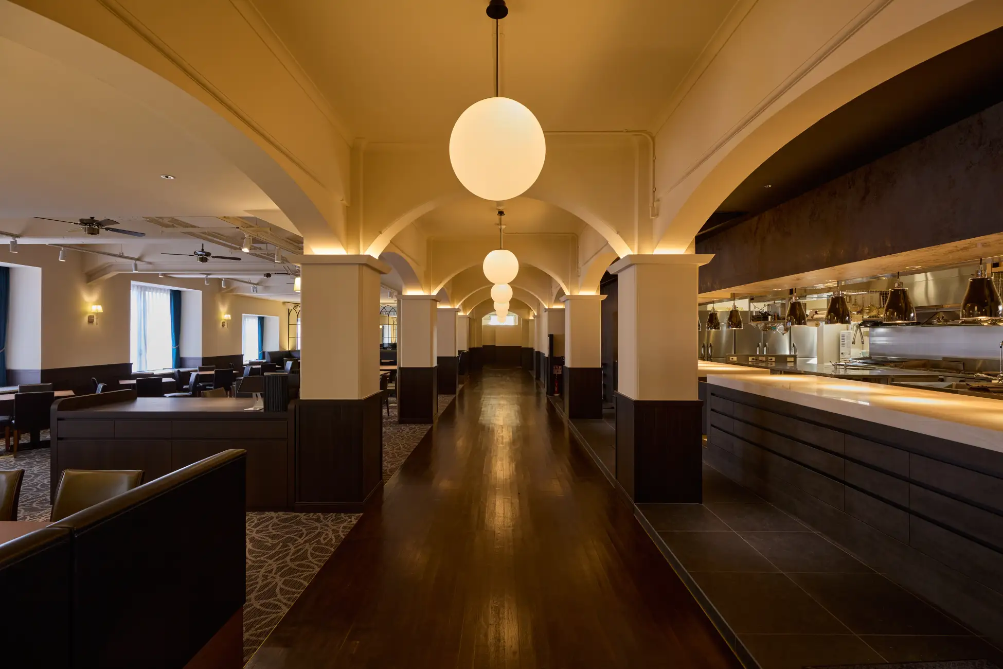 昭和6年に建てられた神戸市立北野小学校をリノベーションした店内は、軋む廊下の音、教室にデザインされていた美しいアーチなど、ノスタルジックな雰囲気をお愉しみいただけます。