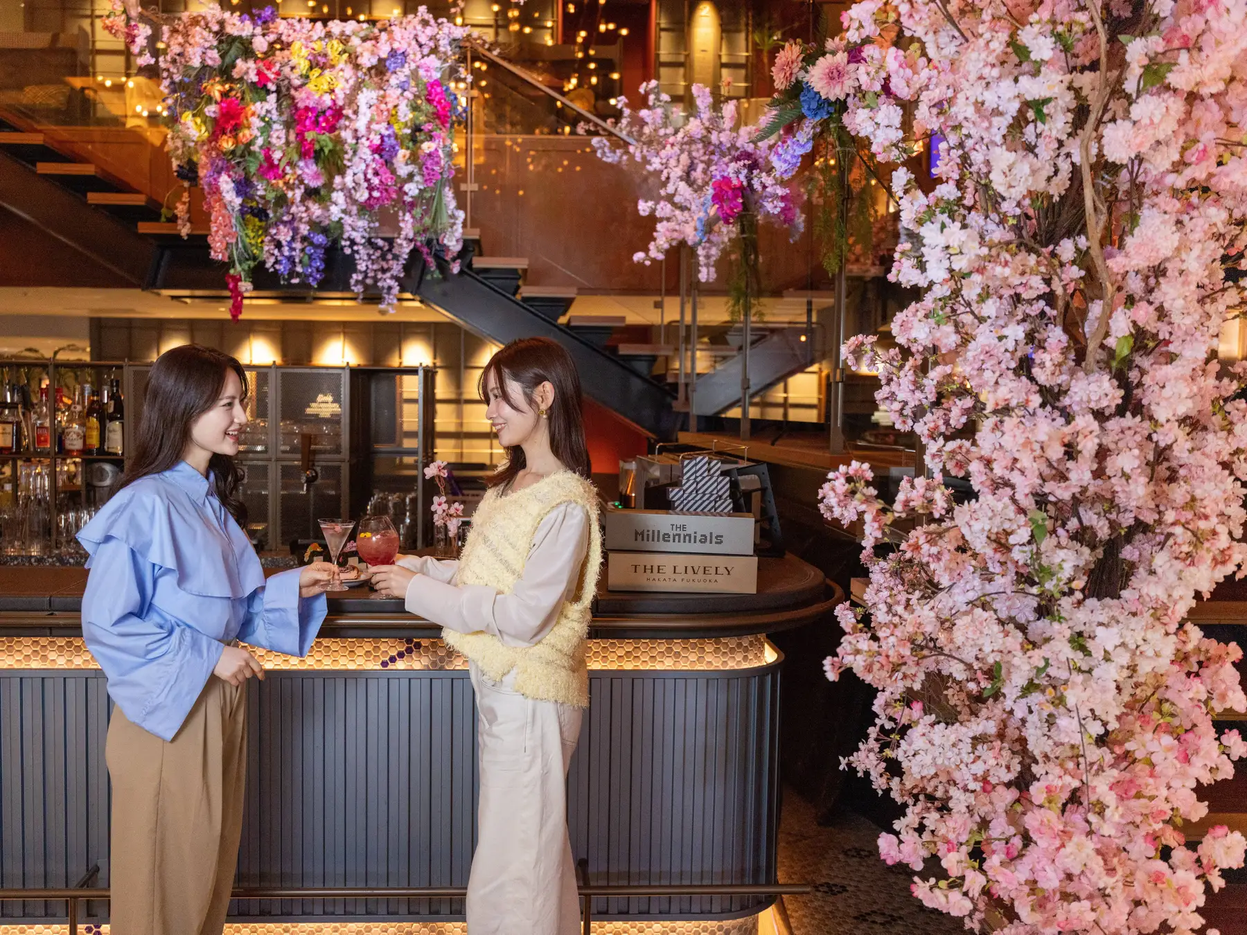 カフェやバー、フラワーアート展示は宿泊せずともご利用いただけます。ぜひ、THE LIVELY 福岡博多ならではの春のひとときをお楽しみください。