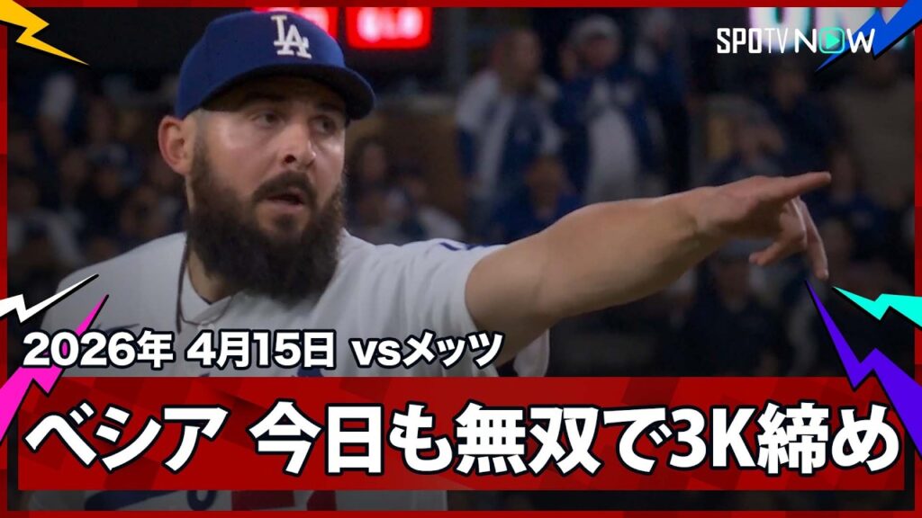 【アレックス・ベシア “もはや誰も打てない”魂の3者連続奪三振で今季2セーブ目!】メッツvsドジャース MLB2026シーズン 4.15