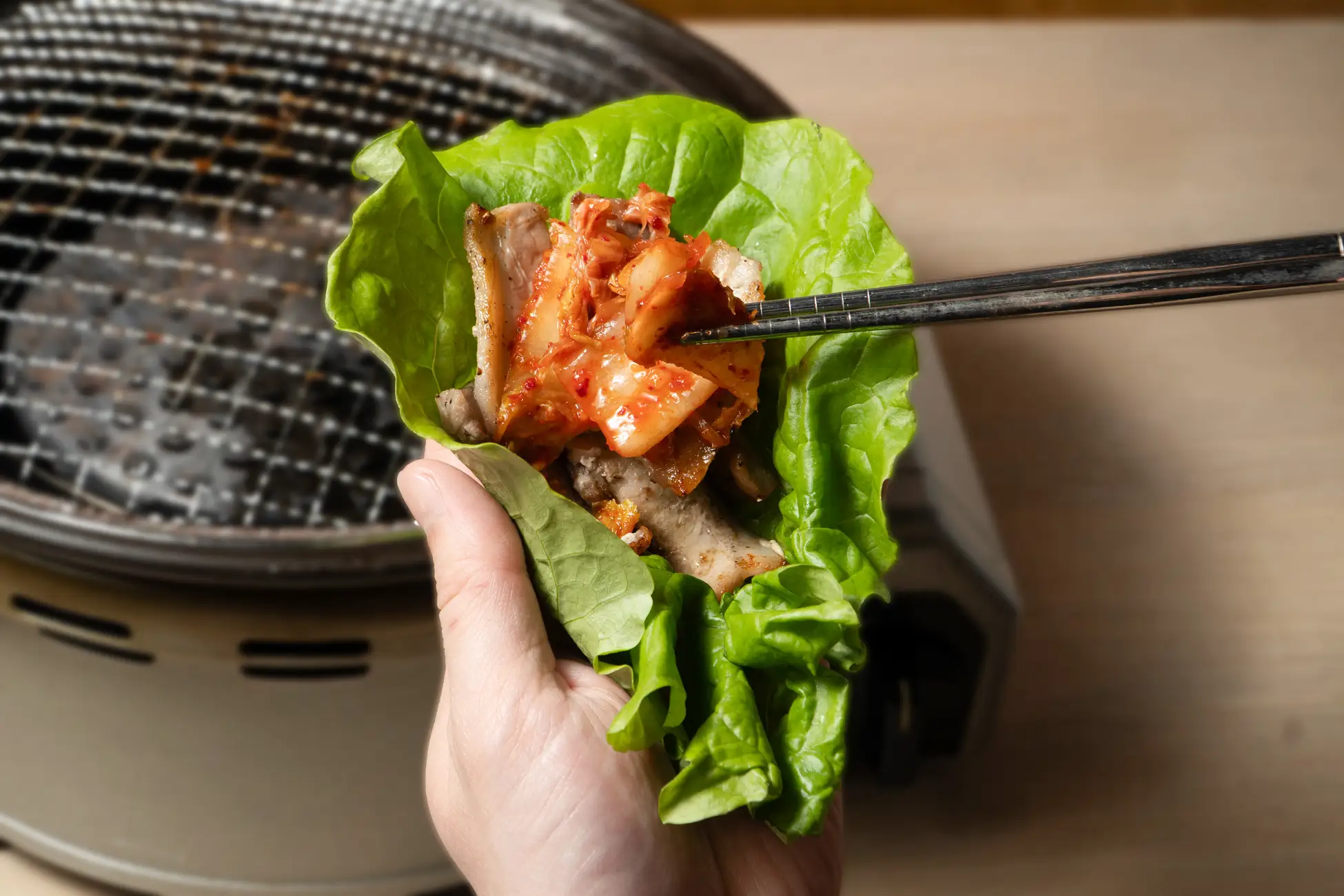 焼いて、包んで、ガブっと幸せ♡ 豚カルビ×キムチの王道コンボ。