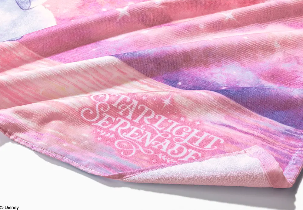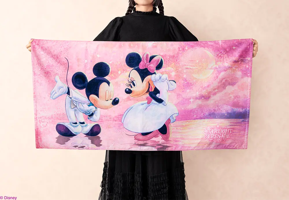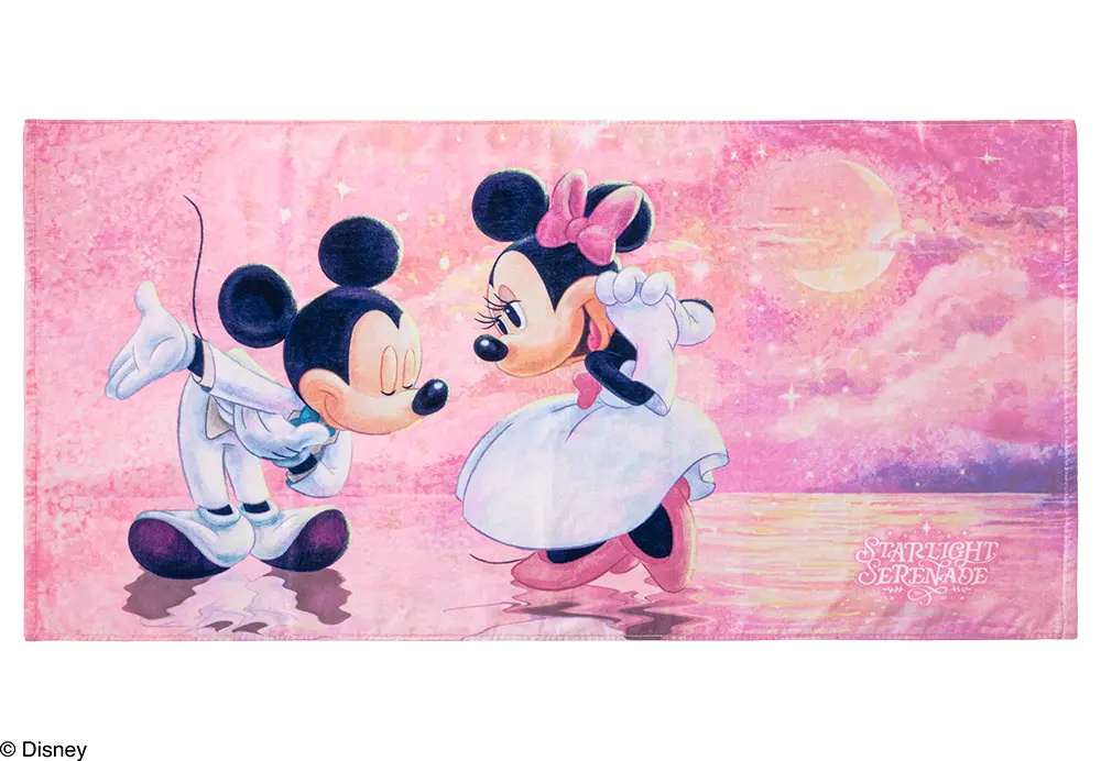 「スターライトセレナーデ」の世界観を詰め込んだバスタオルは、いろんな場面で使いやすい大判サイズ。大きくデザインされた「ミッキーマウス」と「ミニーマウス」に、使うたび癒やされそう。
